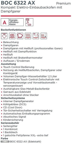 | Premium Kompakt Elektro-Einbaubackofen mit Dampfgarer | |