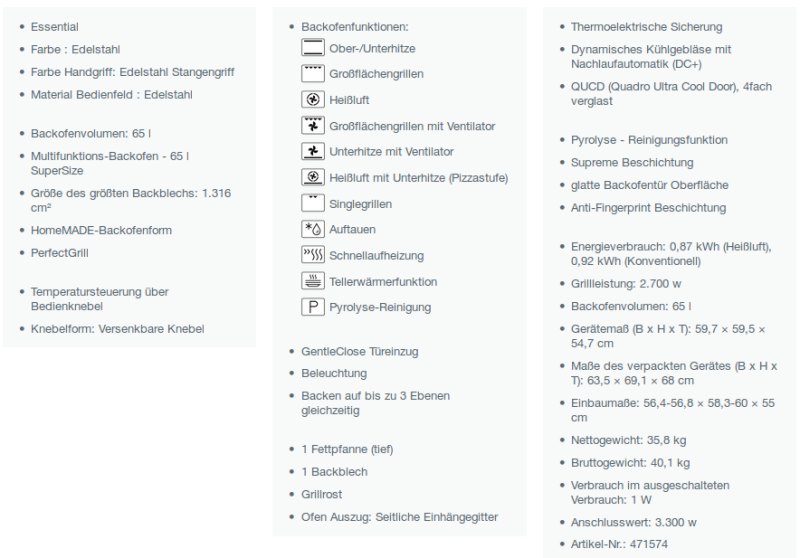 | Energieverbrauch Heißluft/Umluft: | 0,74 kWh |