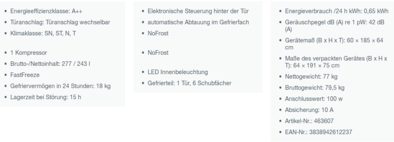 Gefrierteil: 1 Tür, 6 Schubfächer