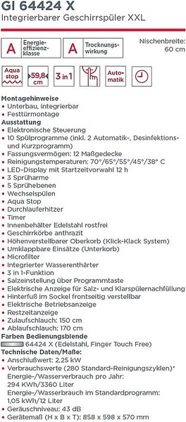 Gorenje GI64424XV XXL Geschirrspüler Integrierbar / Einbau Leiser Betrieb