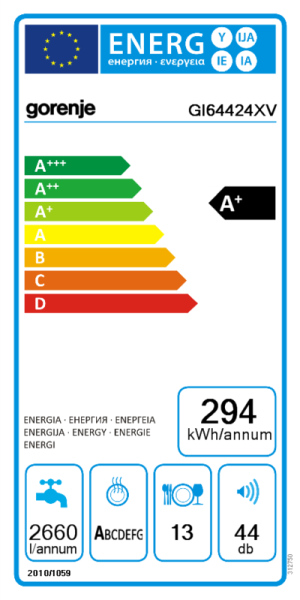 | Spültemperatur °C: | 70, 65, 55, 45, 38 °C |