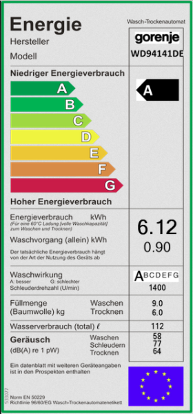 | Waschwirkungsklasse: | Energieeffizienzklasse A |