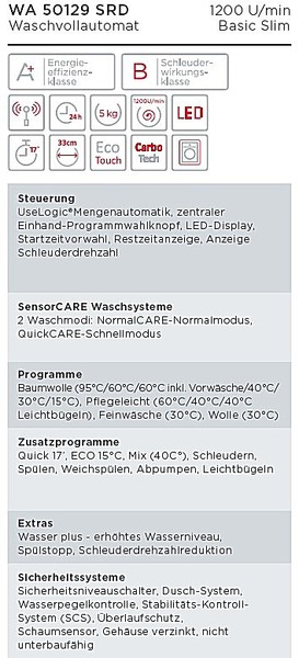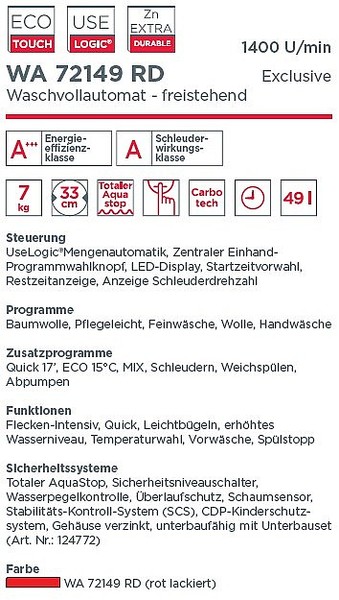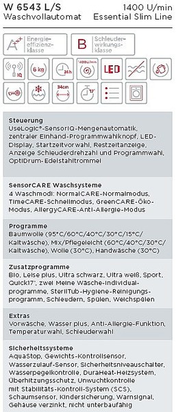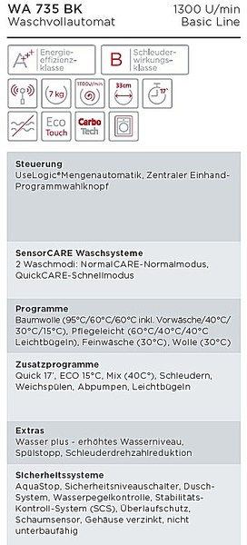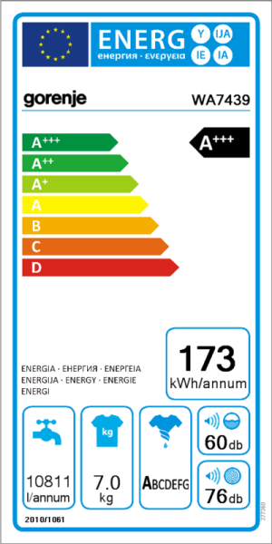 | Schleuderwirkungsklasse: | Energieeffizienzklasse A |