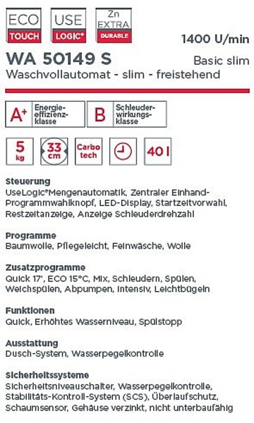 | Programme: | Baumwolle, Synthetik, Wolle, Handwäsche, Quick - Kurzprogramm |