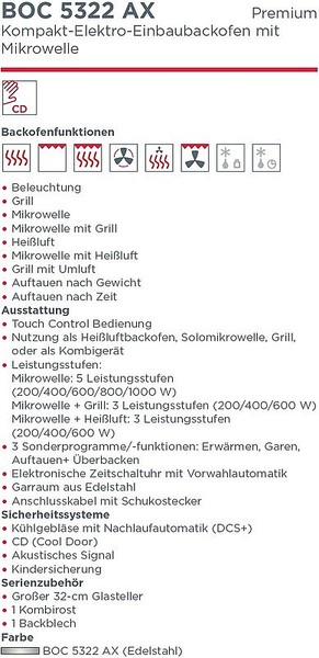 Gorenje BOC5322AX Mikrowelle- Kompakt-Kombibackofen 32 l